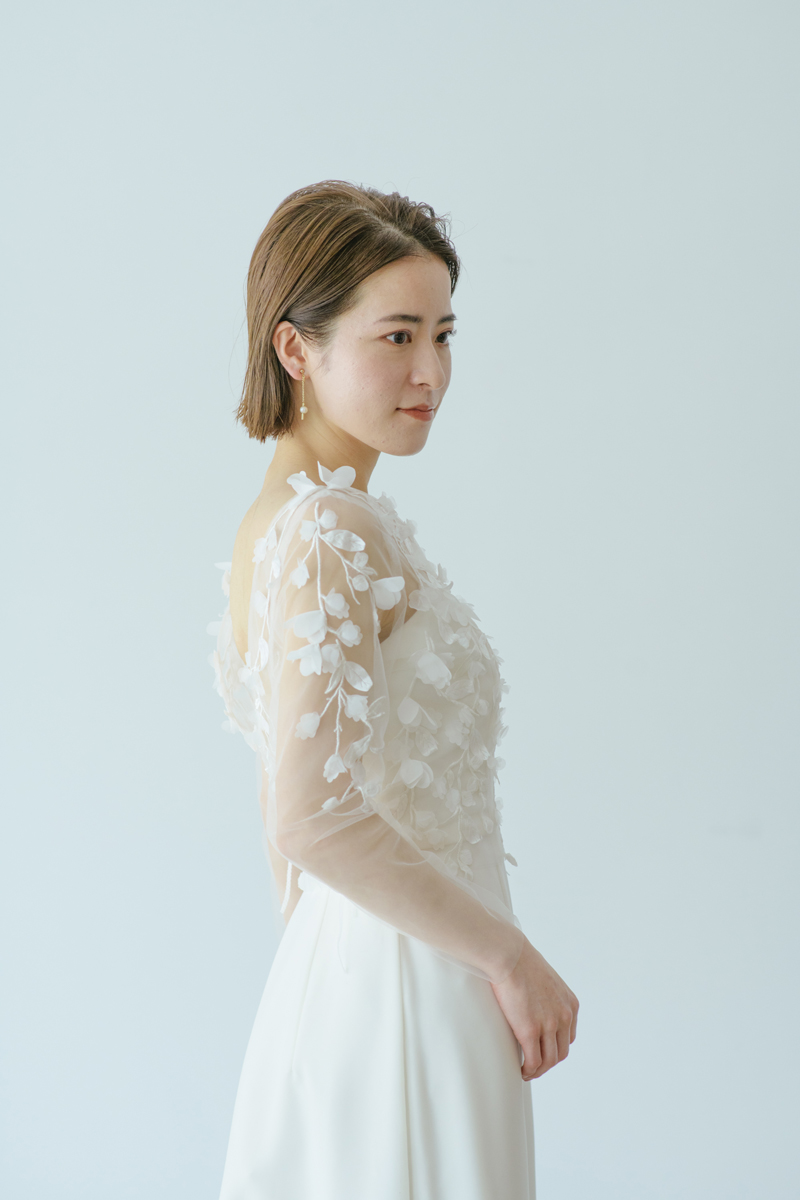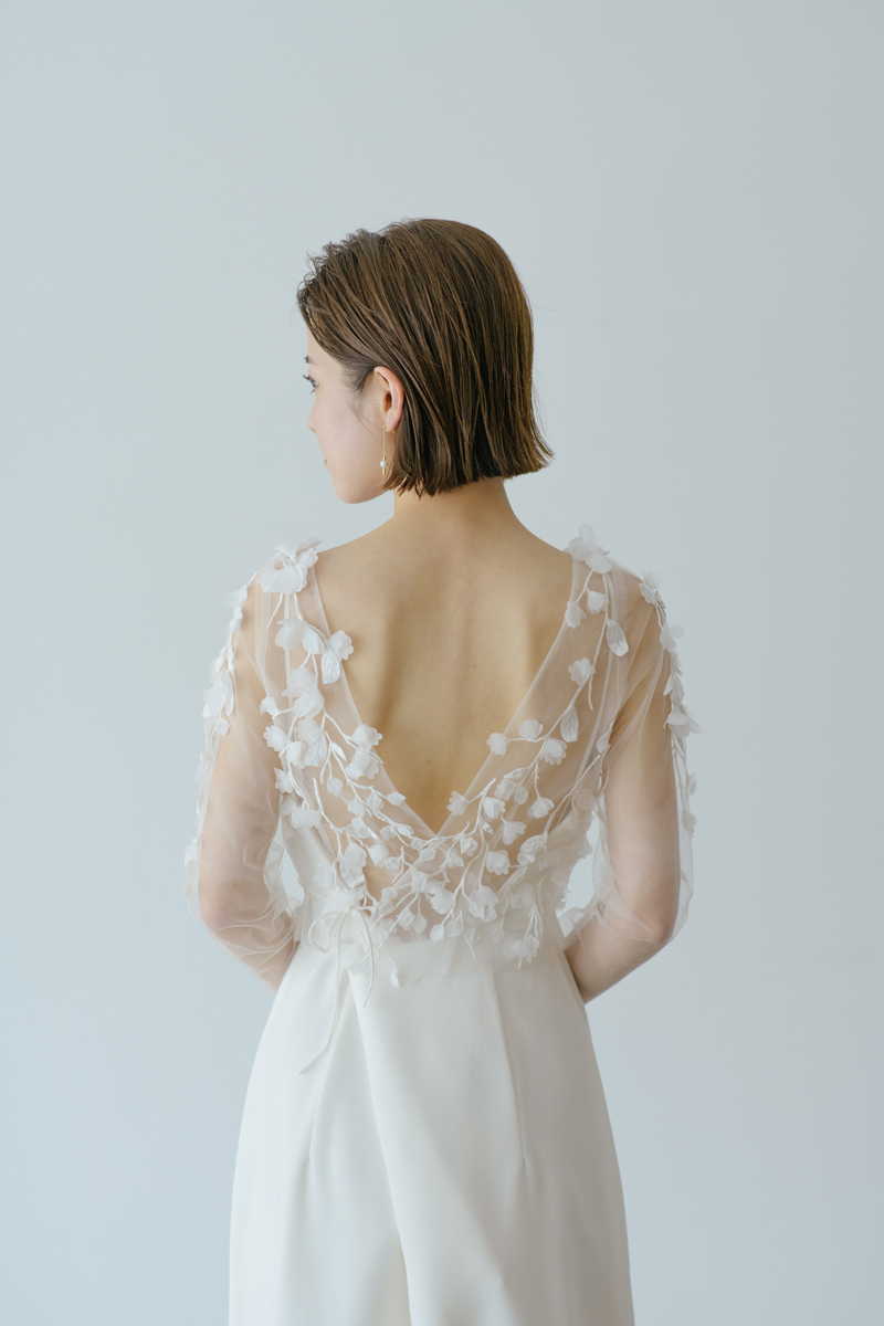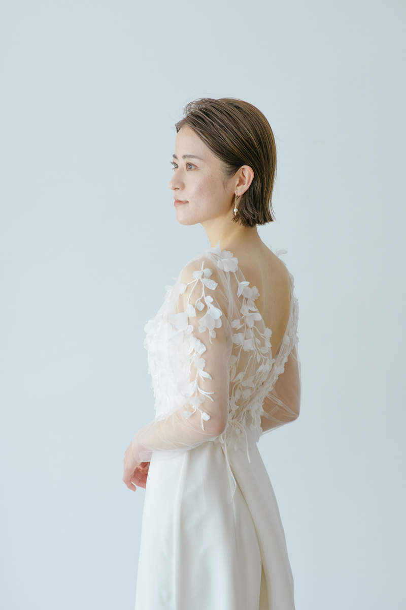 ベースドレスの上に透明感のあるチュールのブラウスを重ねて着用していただきます。