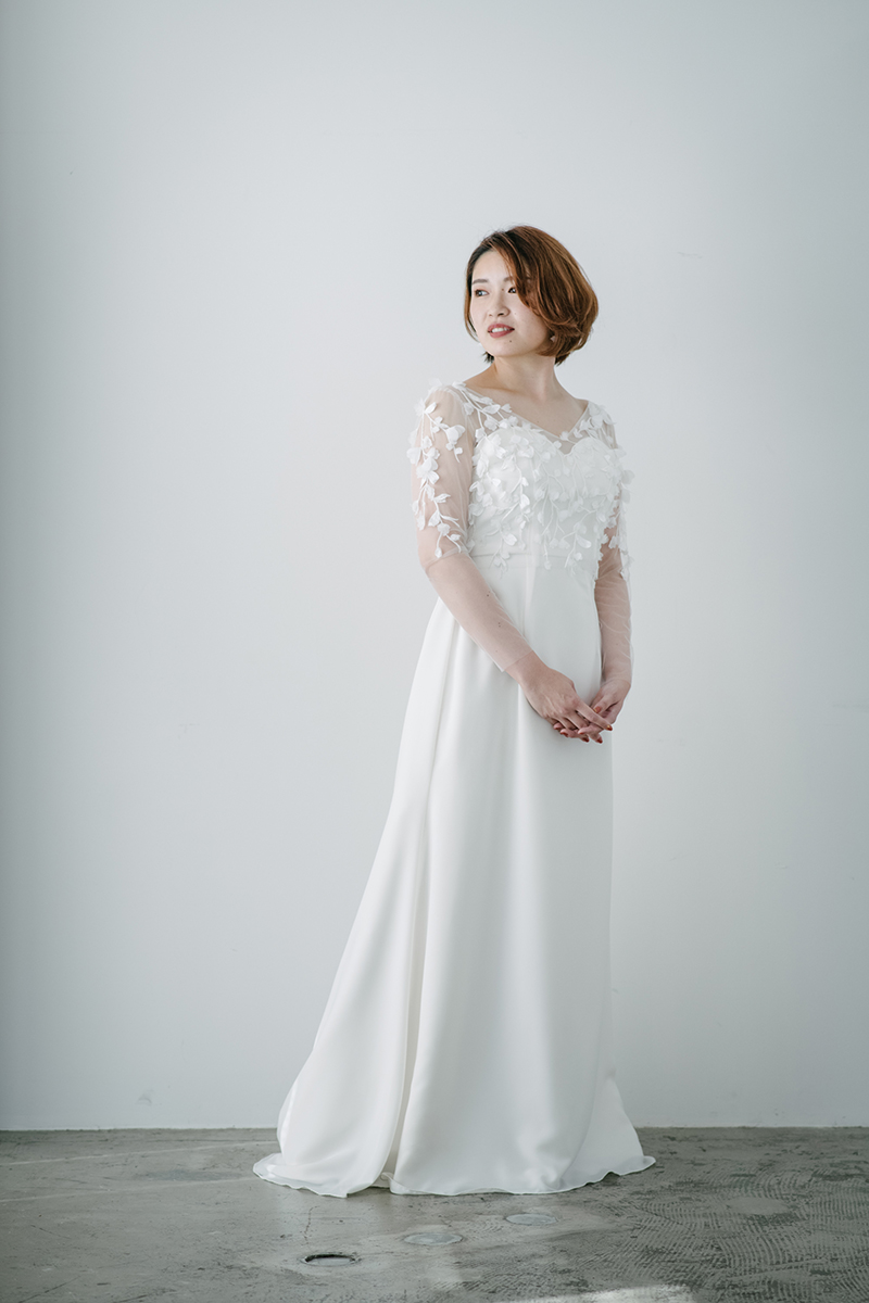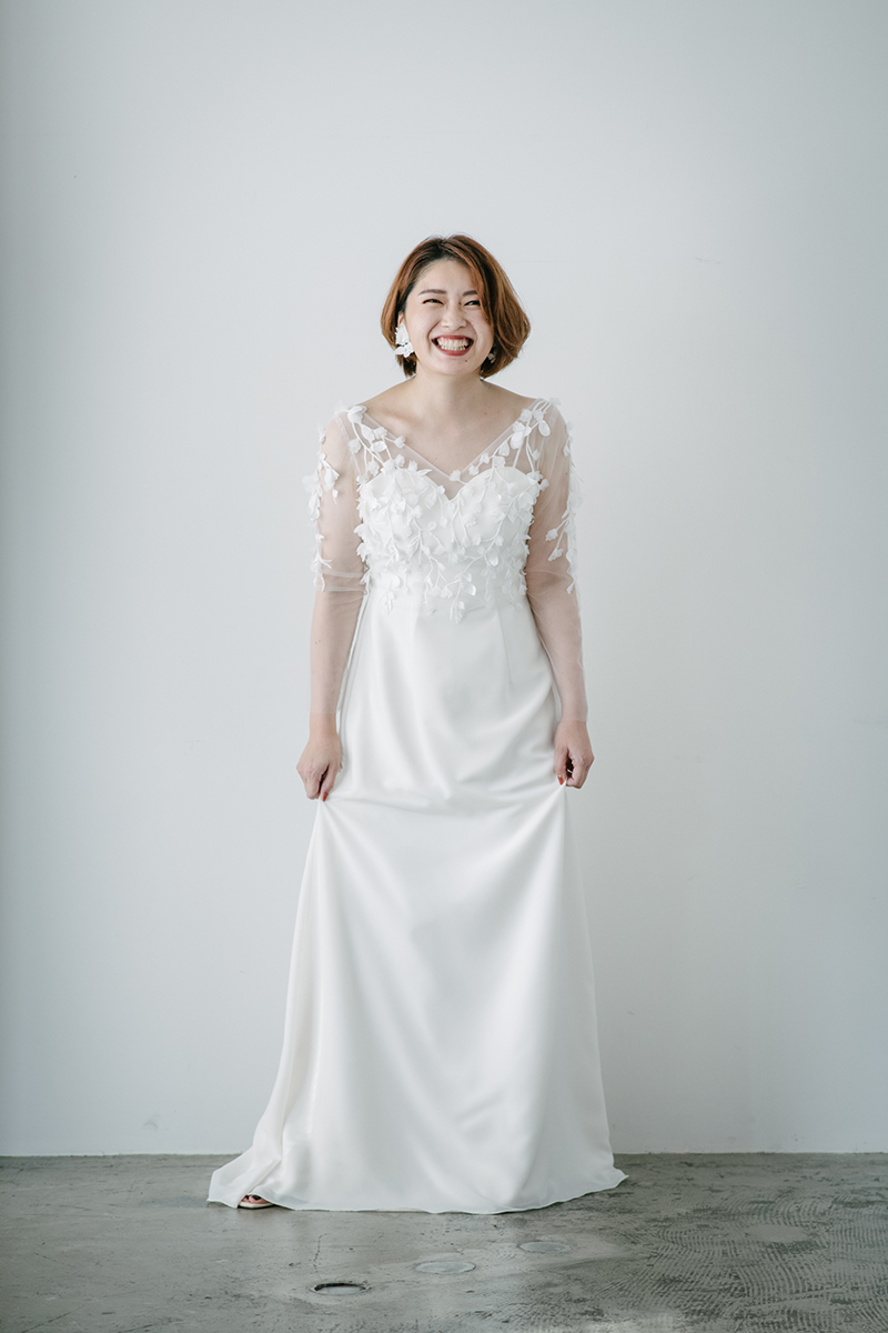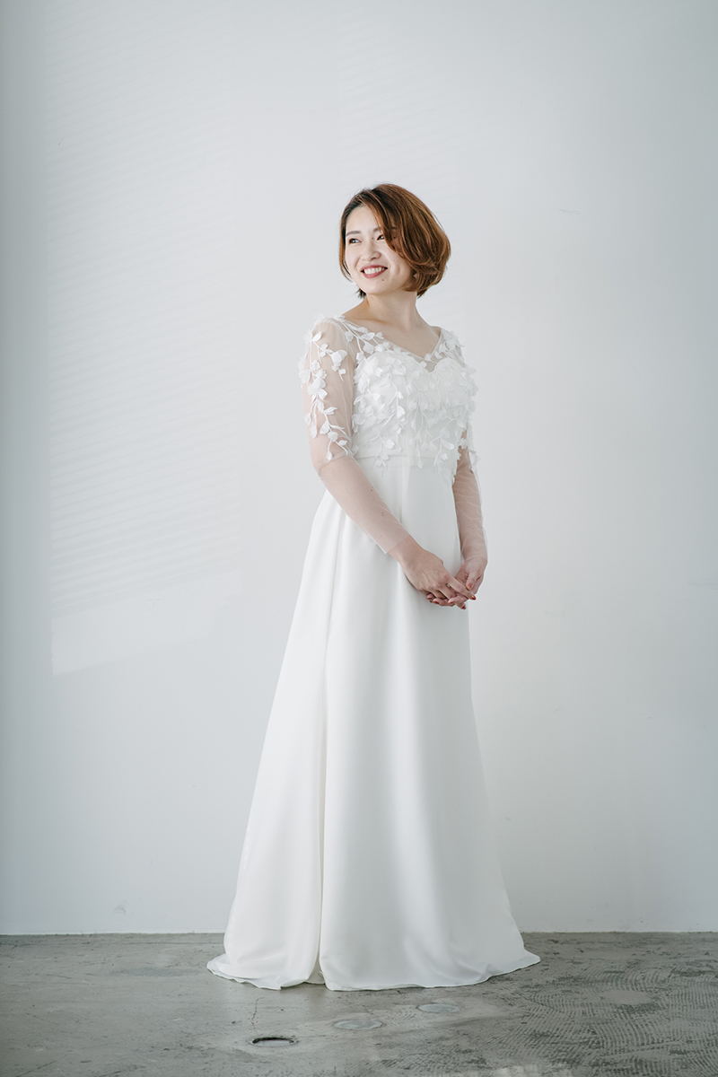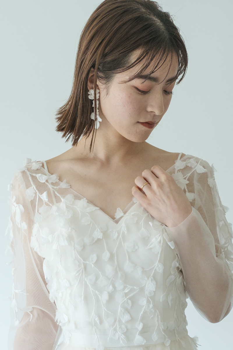 ベースドレスの上に透明感のあるチュールのブラウスを重ねて着用していただきます。